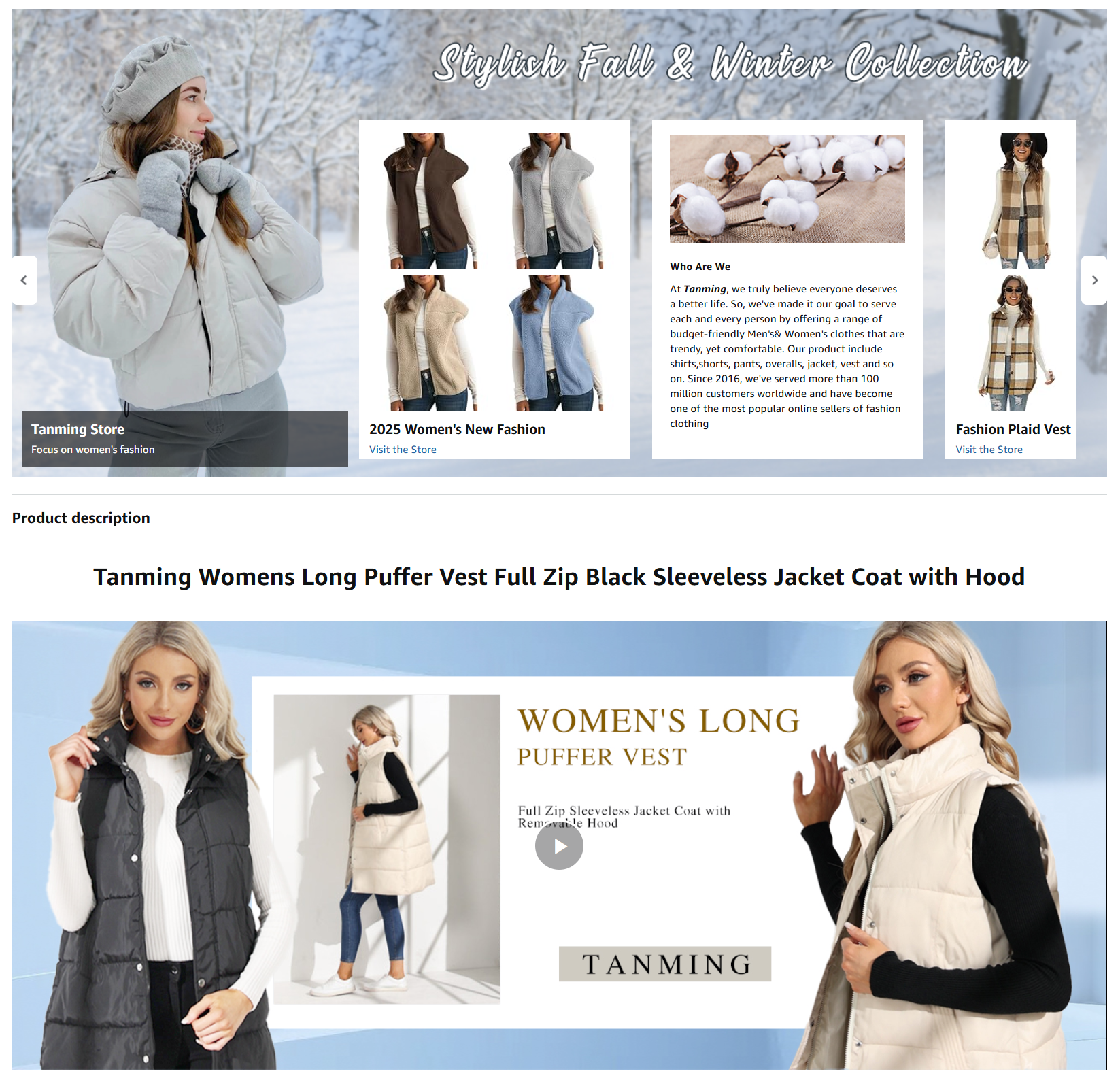 Tanming Women's Long Puffer Vest Casual Sleeveless Puffy Jacket with Removable Hood